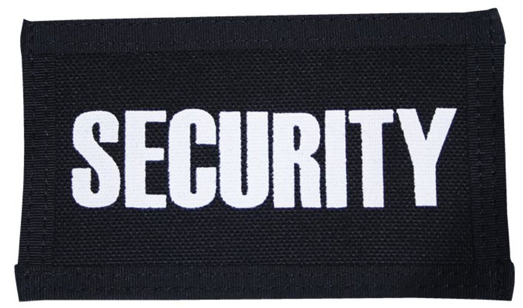 SECURITY patch för att fästas på jackor med fäste för kardborrband (jackan skall ha ett färdigt fäste för kardborrband).