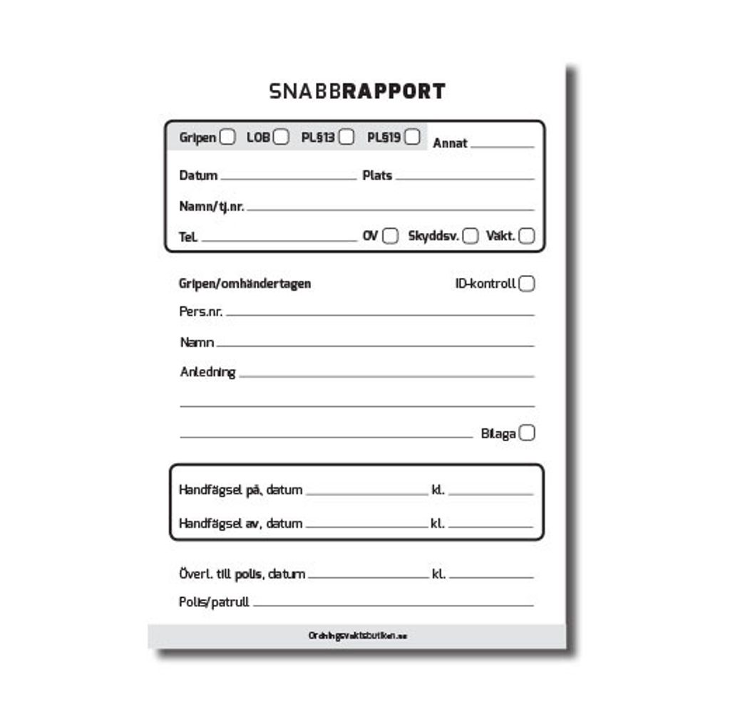 Beskrivning av SNABBRAPPORT BLOCK FÖR ORDNINGSVAKT A6